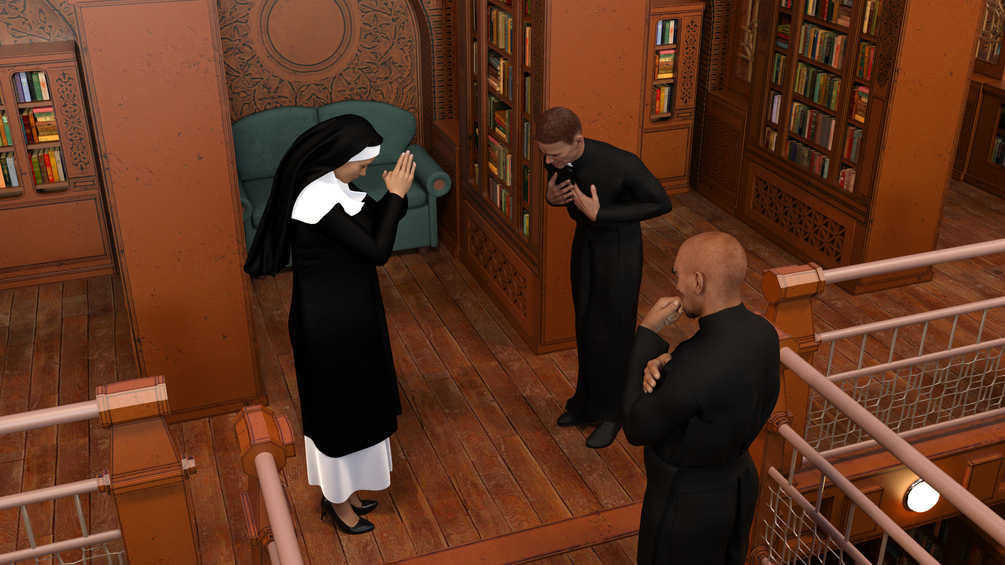 In the quiet corners of the church library, Brother Thomas and Father John await the arrival of Sister Olga, a young nun who is to become the new librarian. As they discuss the ancient spirits hidden in the old books, Father John wonders how they will react to a female presence in a library that has been off-limits to women for centuries. Little do they know, the arrival of Sister Olga will set in motion a chain of events that will challenge their beliefs and change the church forever.